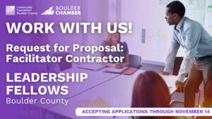 Leadership Fellows Boulder County Request For Proposal: Facilitator Contractor October 31, 2025 Project Overview We are seeking a dynamic and experienced facilitator to lead specific sessions of the Leadership Fellows Boulder County. Program sessions are held on the 3rd Wednesday of the month from 12-5 pm, running January through September. The January session is a…